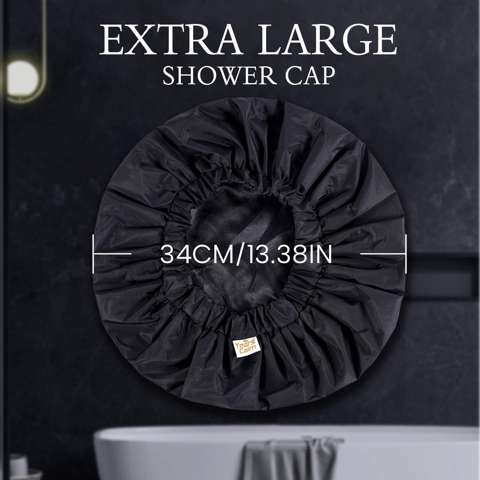 Years calm Shower Cap for Men Waterproof Reusable - Fashion Dual-Layer Design, Adjustable Elastic Band for Long & Curly Hair, XL Bath & Spa Cap for Travel, Satin Lined Shower Cap Black