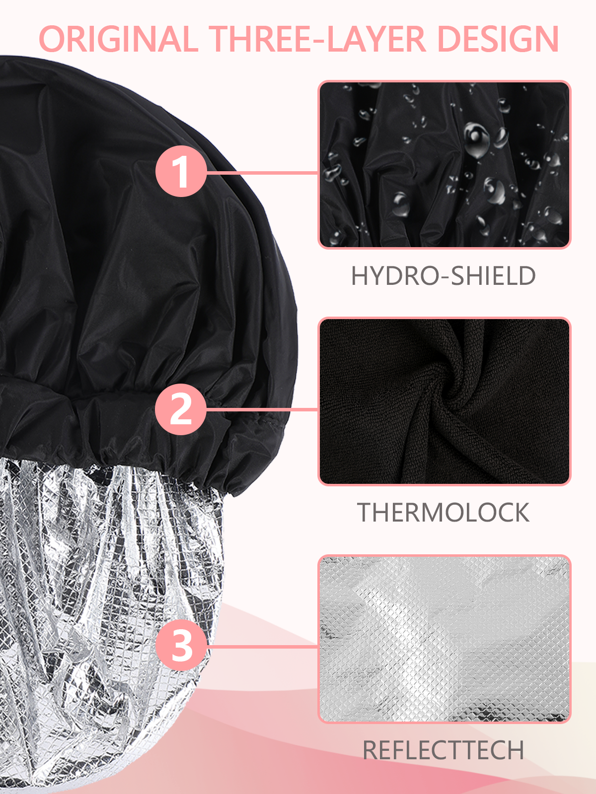Years calm Heat Cap For Deep Conditioning Hair Cap,Three-Layer Design Shower Caps For Women Reusable Waterproof Suitable For Bathing, Hair Care, Hair Dyeing And Other Scenarios