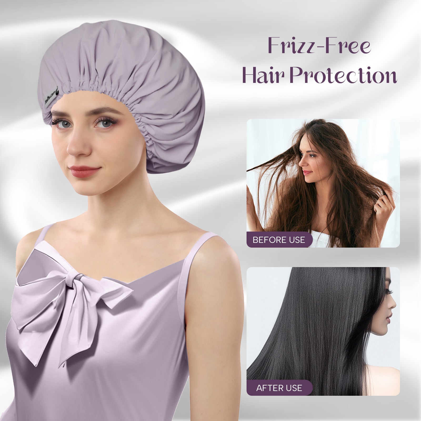 • Luxurious, Functional Design - Made with a double-layer construction: the outer layer features soft,waterproof ice velvet. At the same time, the inner lining is Light luxury satin to help protect your hair from frizz and breakage. Fully waterproof and perfect for all hair types
