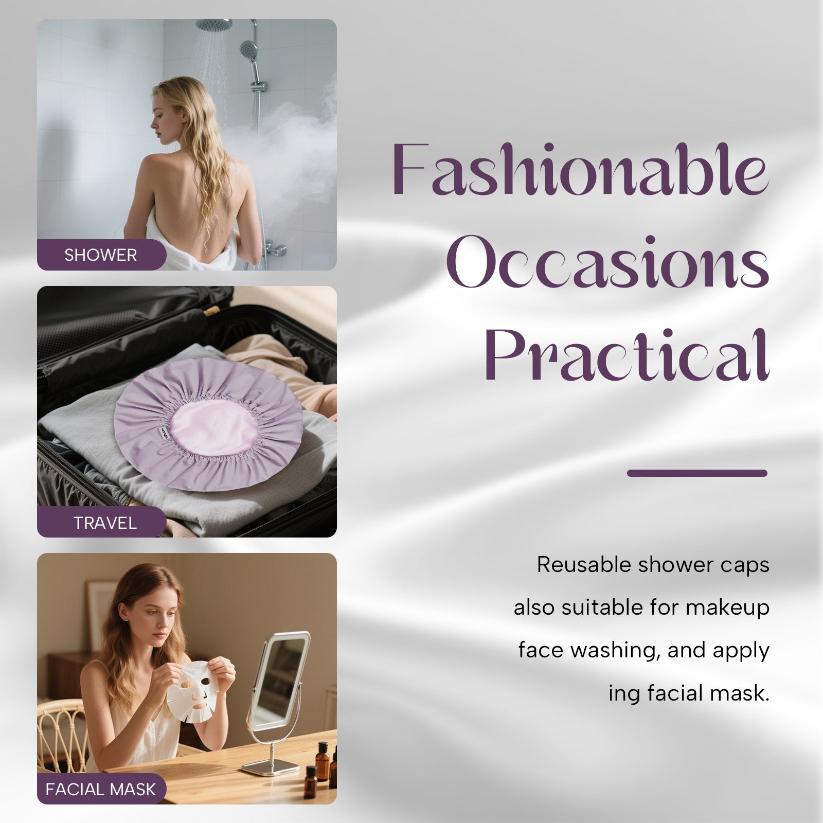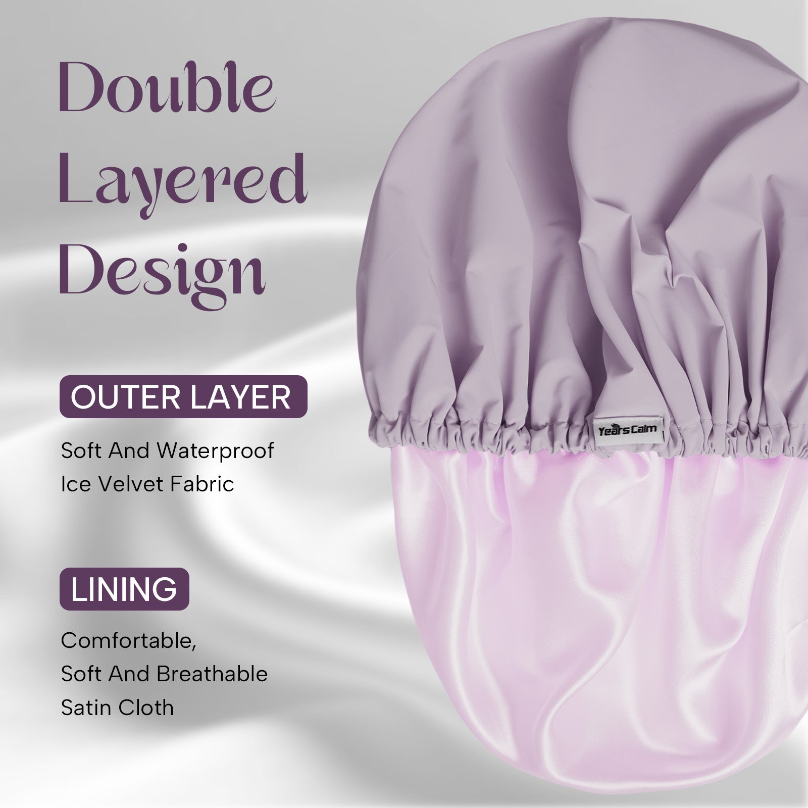 Years calm Shower Cap Reusable Waterproof, Double-Layer Hair Cap, with Elastic Band, Ideal for Shower, Spa, Travel & Cleaning