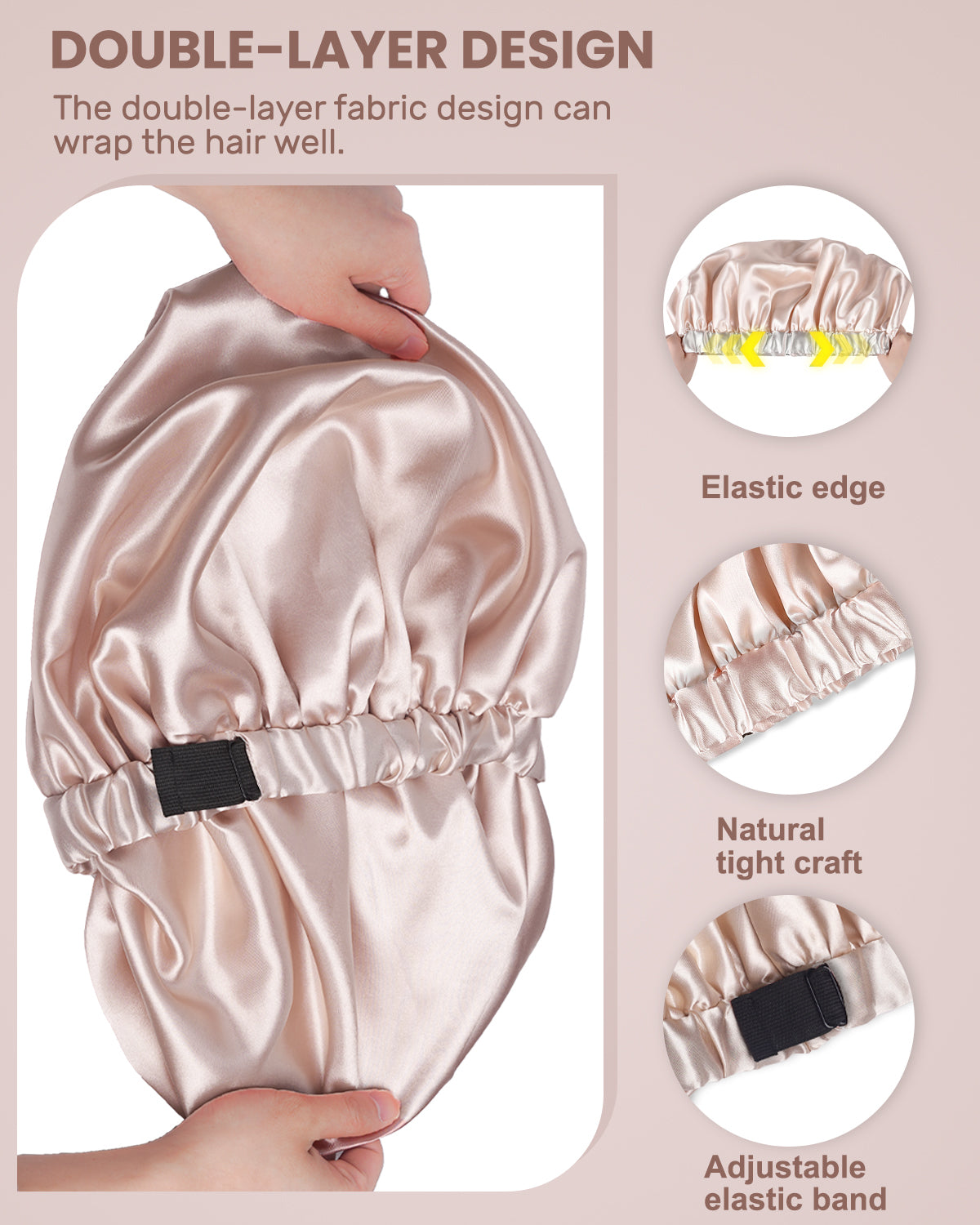 • Double-Layer Design And Durability: Our Bonnet Has Been Upgraded With A Double-Layer Satin Design That Allows It To Be Folded For Space-Saving Without Worrying About Damage.    Compared To Single-Layer Satin Bonnets, The Double-Layer Design Offers Superior Comfort And Better Protection Against Dust And Kitchen Grease, Ensuring Your Hair Stays Clean And Frizz-Free