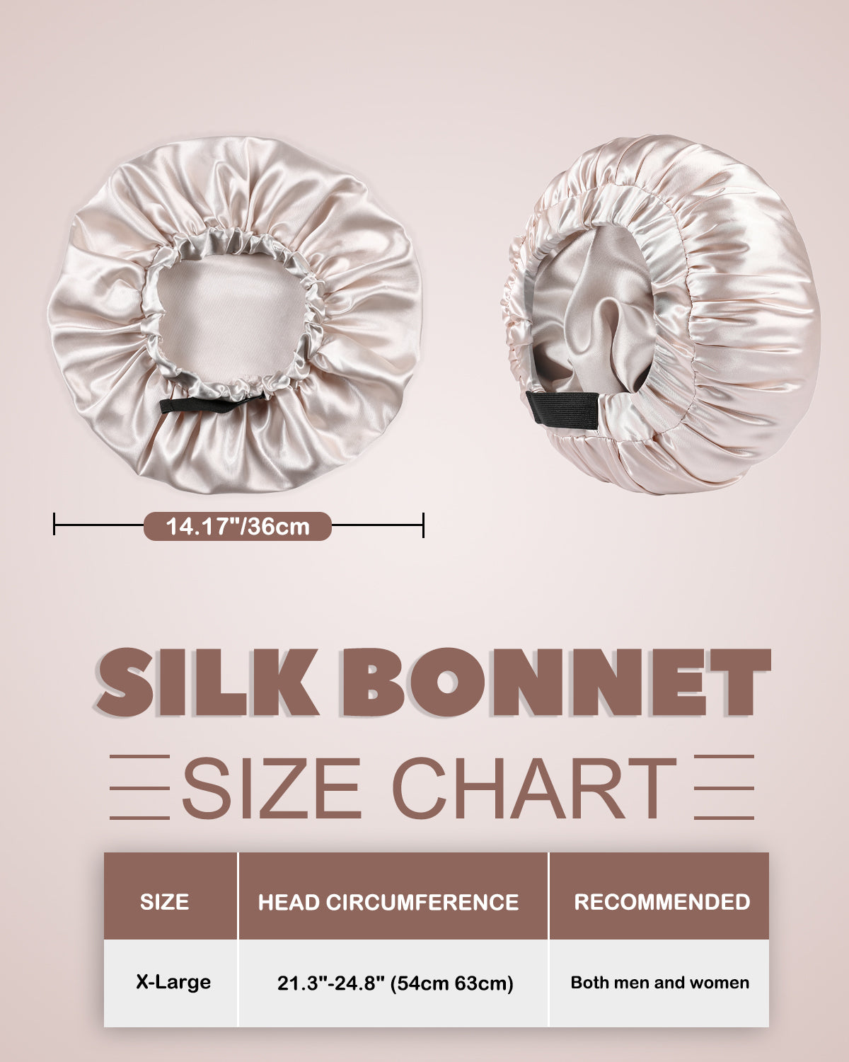 • Fits All Head Sizes: Our Silk Bonnet Has A Diameter Of 14.1 Inches (36 Cm) And An Inner Diameter Of Approximately 5.2 Inches (13 Cm).  The Elastic Band Is Widened To 1 Inch (2.5 Cm) And Features An Adjustable Buckle, Allowing You To Customize The Fit For Maximum Comfort.  This Design Effectively Keeps The Bonnet In Place, Preventing It From Slipping Off, Ensuring All-Night Comfort