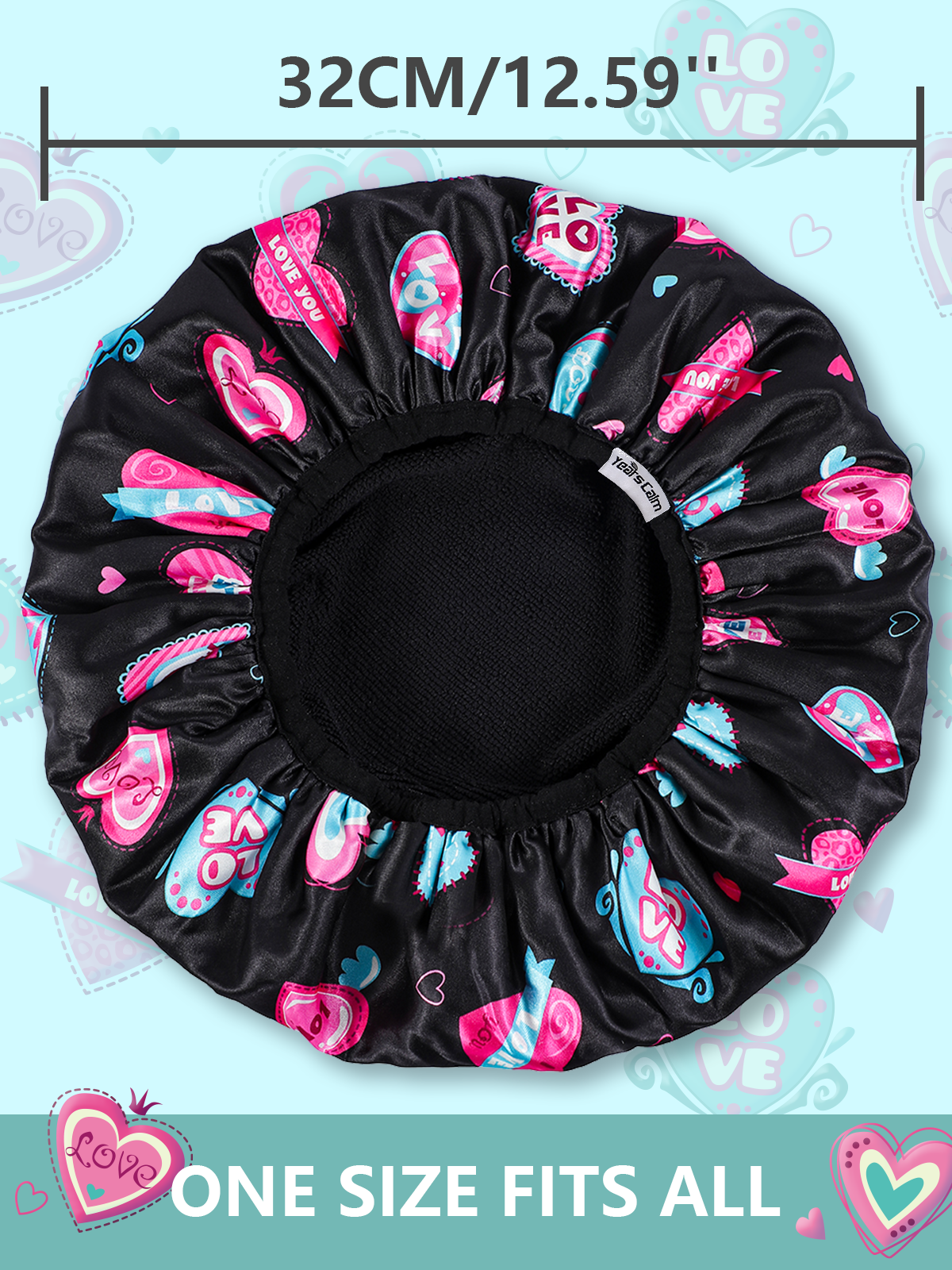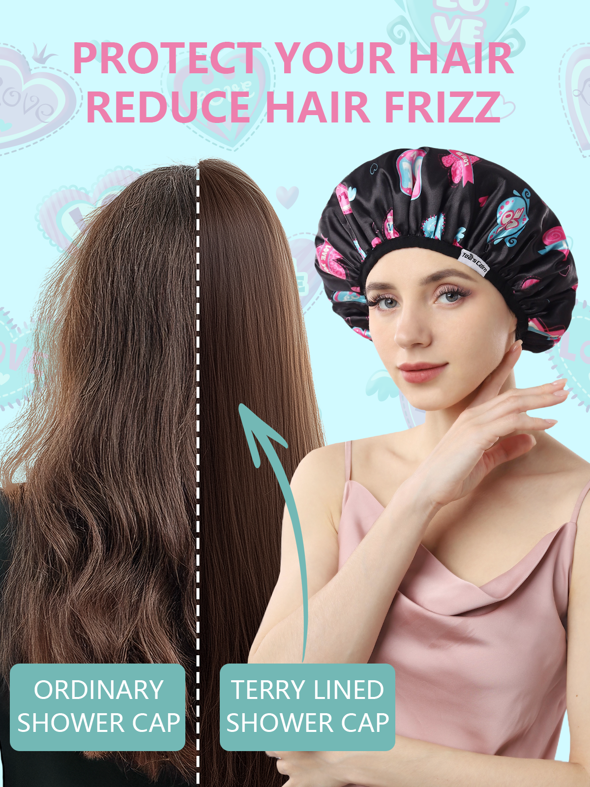 Years calm Terry Lined Shower Cap, Triple Layer Heart motifs,Waterproof Reusable Elastic,Hair Shower Cap for Women,Terry Cloth Shower Cap for Spa,Clean,Trave