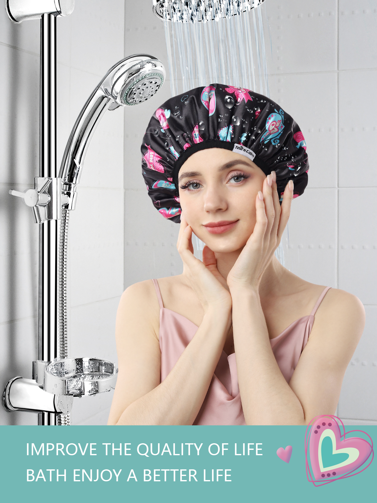 • Versatile & Practical Use: This waterproof shower cap is perfect for daily use, including showering, face care, hair care, hair masks, cooking, and travel. Protect your hair in style with the heart-shaped design that increase a fun, fashionable touch to your routine